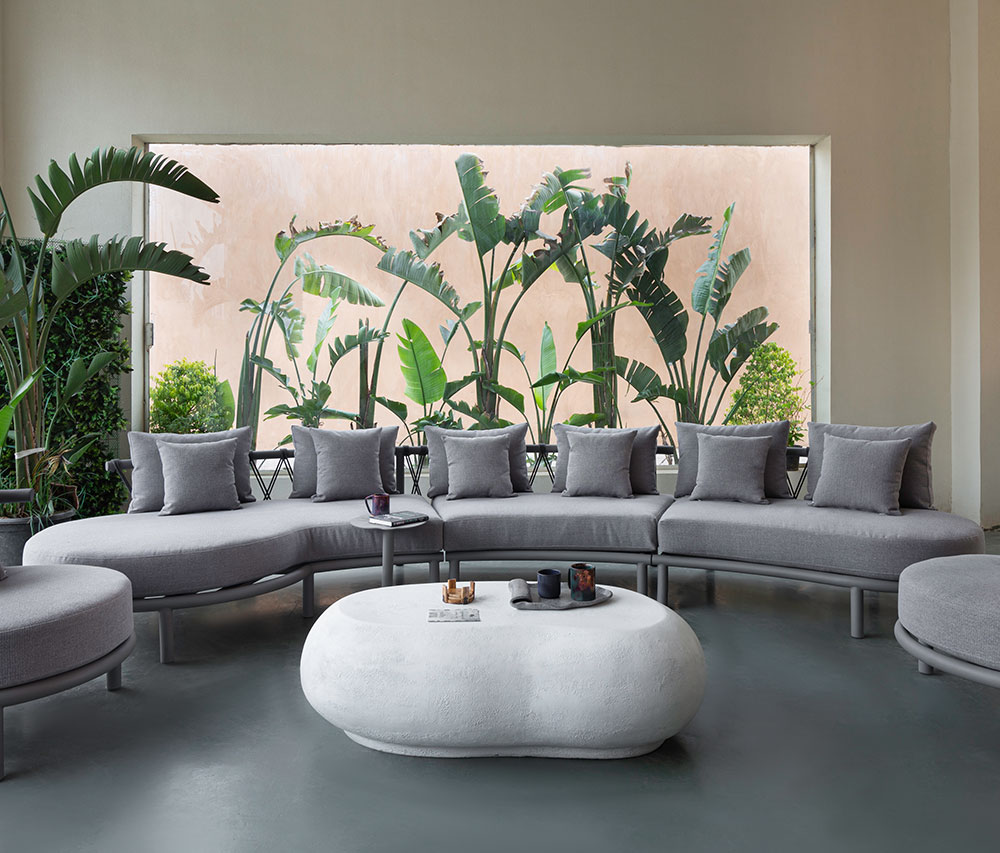 Outdoor collection that celebrates the joy of open-air living with playful, curvy shapes and an ecoconscious approach