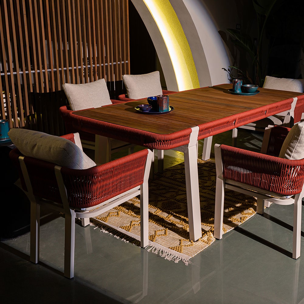Transform your dining moments into a Mediterranean daydream with the timeless elegance of the lugano Dining Set.