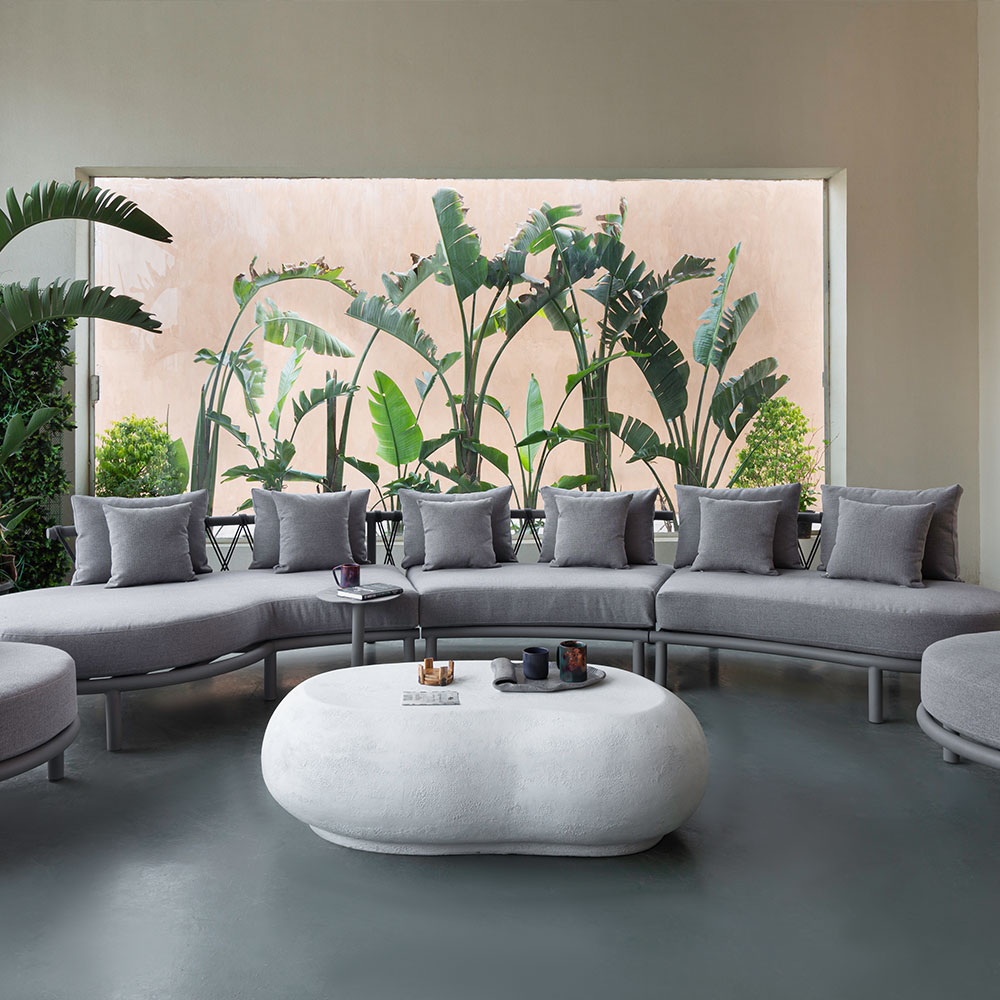 Outdoor collection that celebrates the joy of open-air living with playful, curvy shapes and an ecoconscious approach